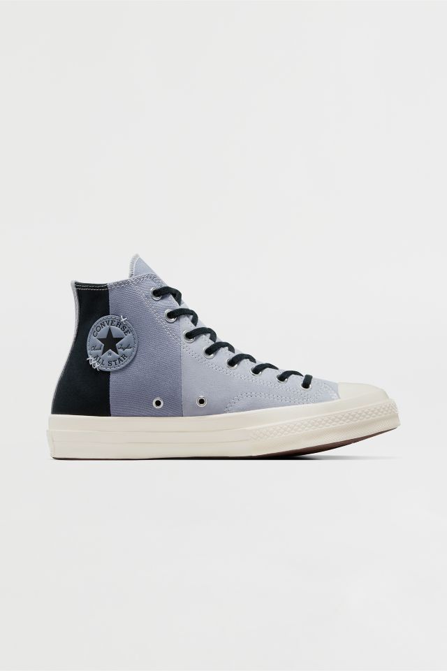 Classic Chuck 70 high top sneakers by Converse with a patchwork upper. High top style with a lace up front, rubber toe cap and textured rubber outsole.
