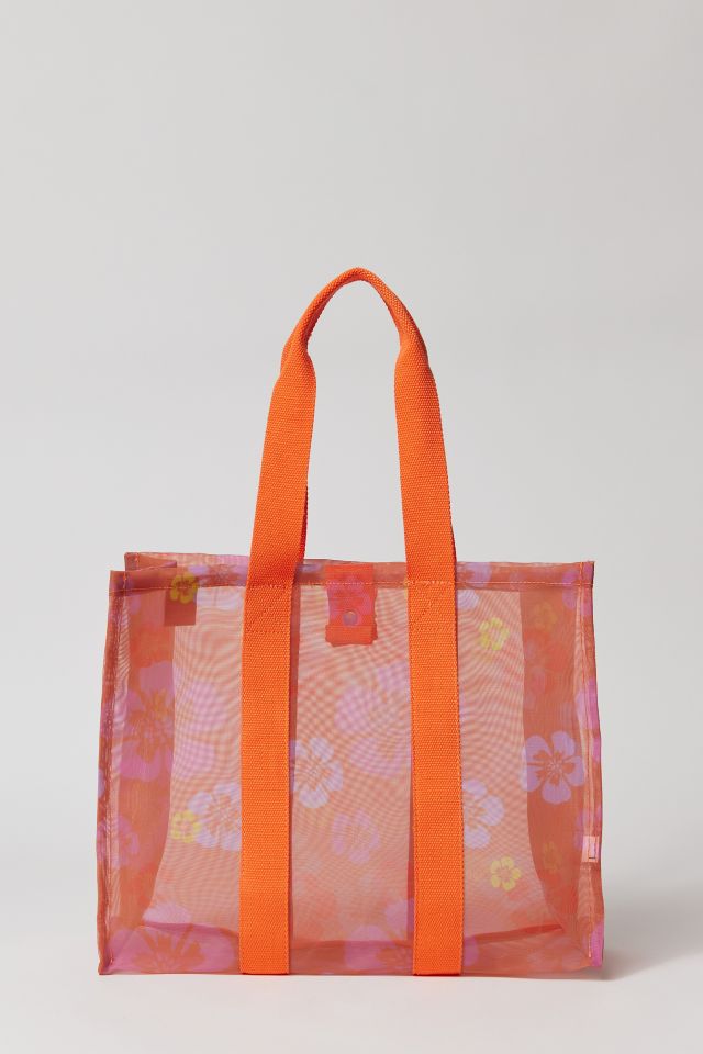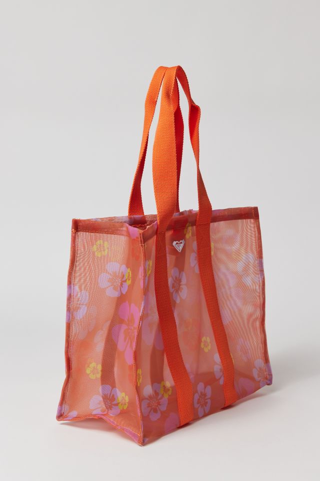 Carryall tote bag from Kate Bosworth's collection with Roxy. Oversized boxy silhouette in soft and durable mesh complete with a snap closure.