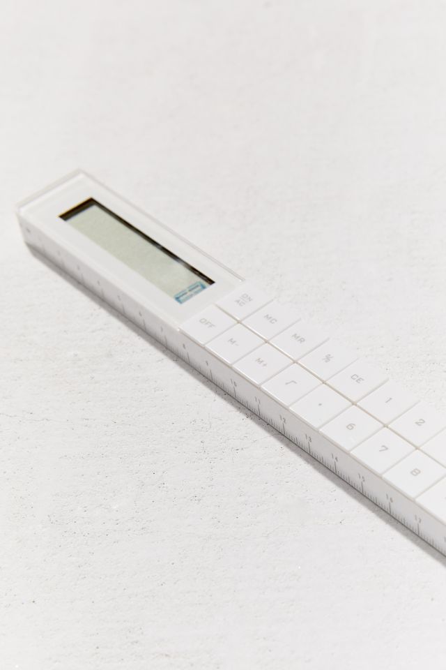 Your essential tools combined with this ingenious ruler calculator. Foot-long calculator equipped with ruler markings at side for measuring and multiplying, all at the same time. With inches + centimeters.