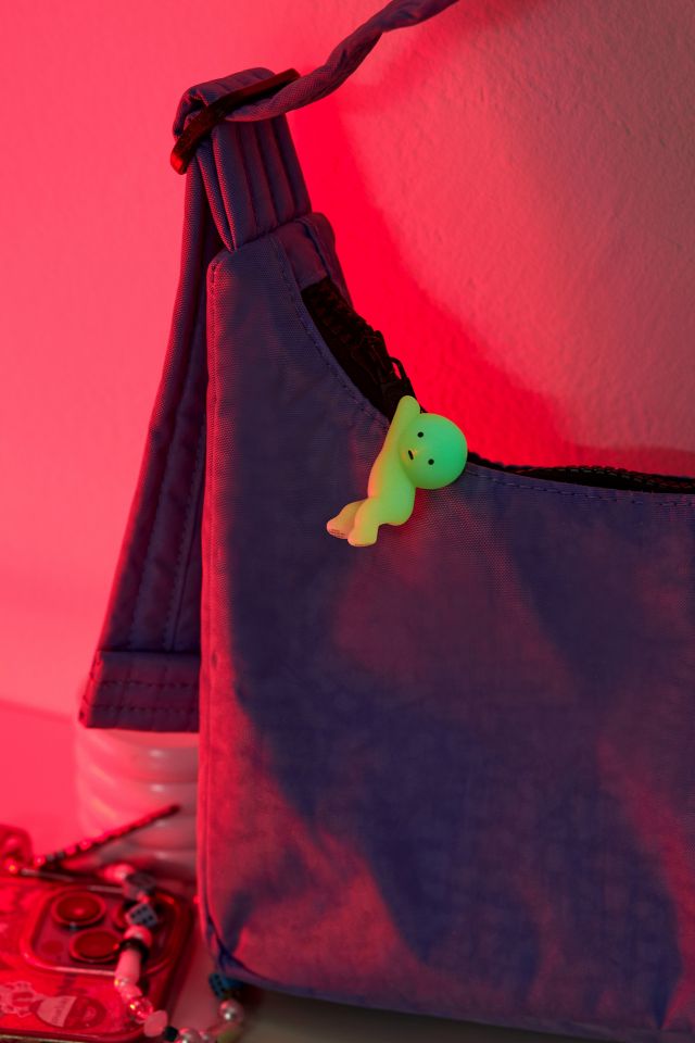 Carry a supportive little buddy with you wherever you go with this Smiski® zipperbite. Made with phosphorescent material that absorbs light and makes Smiski glow in the dark, this lil pal bites onto your zippers for a fun finishing touch. Its versatile design is perfect to attach to your school bag, laptop sleeves, purses or your jacket!