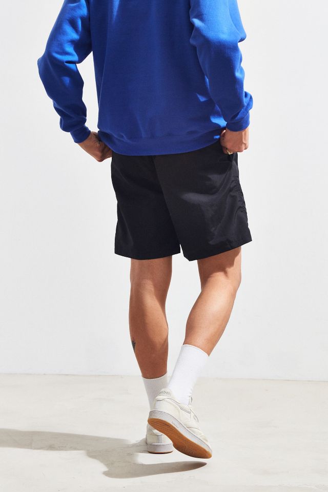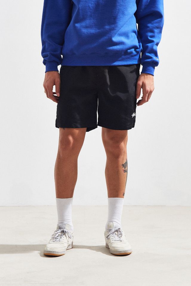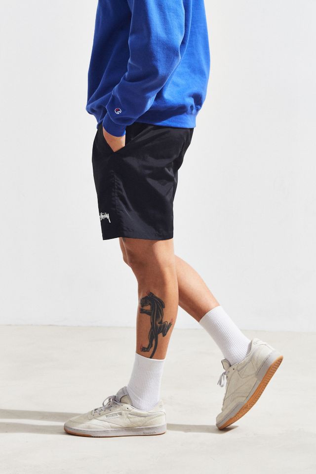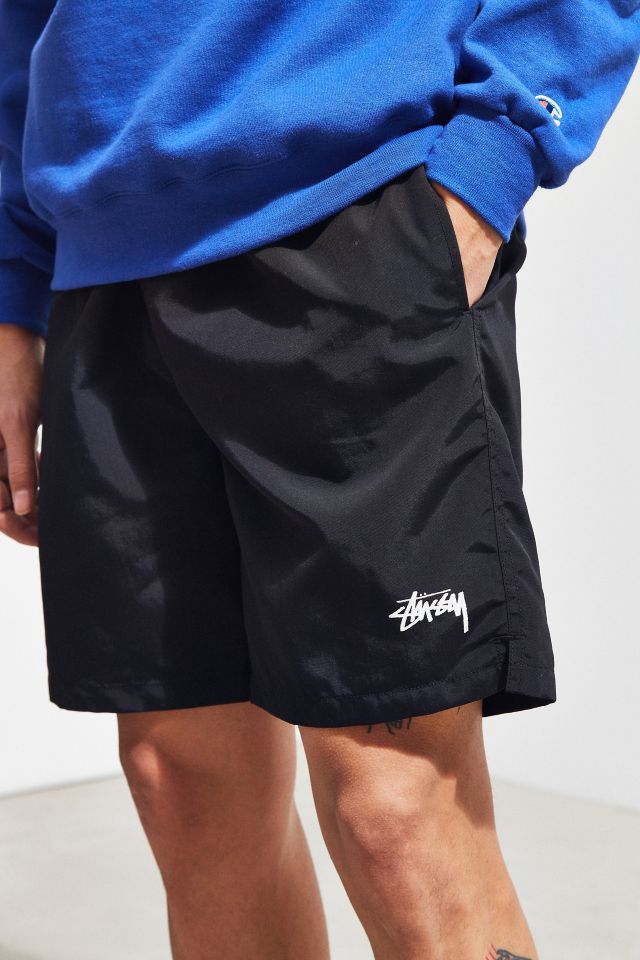 Versatile shorts from Stussy. Durable nylon is cut in a pull-on silhouette that hits just above the knee, topped with an elastic waist + adjustable drawstring for a comfortable fit. Features at logo at the left leg, complete with front slant pockets and a single pocket at the back. Stussy is a California-based streetwear label that delivers a collection of t-shirts, hoodies and accessories, all emblazoned with Shawn Stussy's iconic signature.