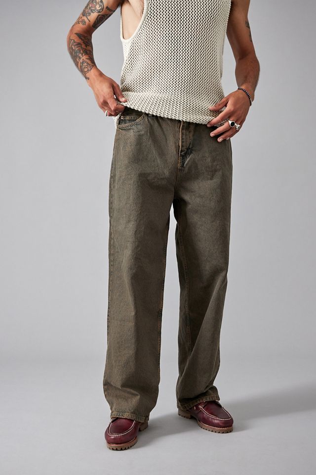 Relaxed wide fit jeans by BDG. Features a heritage denim design in an overdyed brown wash. Cut with a regular rise waist, belt loops, button and zip fastening and a classic five-pocket fit. Only at UO.