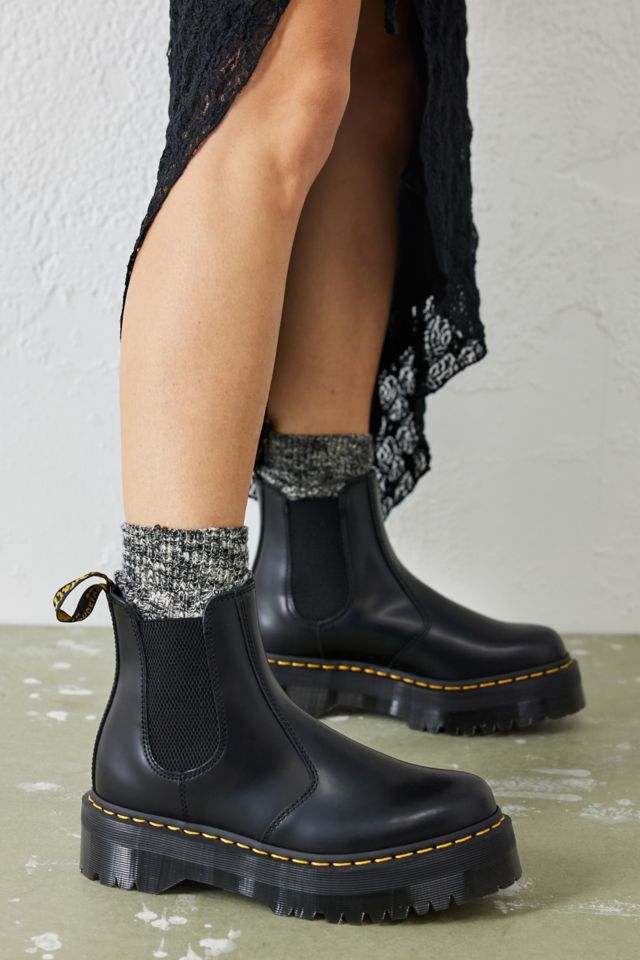 Slick 2976 Chelsea boot by Dr. Martens in a classic silhouette that stands the test of time. Rendered in Airwair™ original signature leather, firm + finished with a bright appearance, set on a chunky welted sole. Air-cushioned with superior abrasion that resists slippery surfaces, and finished with classic Doc details, like grooved edges, yellow stitching and heel-loop.