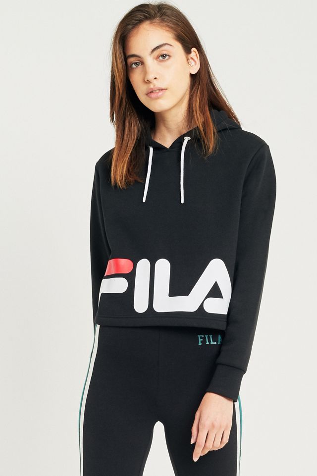 Sporty logo hoodie from the athleticwear experts at FILA. Cut in a boxy cropped construction. Topped with the iconic logo on the front and complete with a drawstring hood.