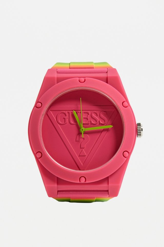Bold & neon watch from GUESS. Features a silicone construction with a tonal look. Finished with an adjustable wrist strap.