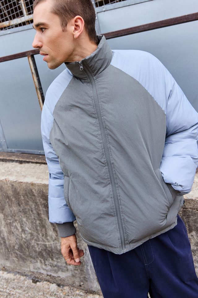 Balloon puffer jacket from iets frans... in a colour-block design. Padded style complete with a mock neck, zip-through front fastening, long sleeves, elasticated cuffs, two side welt pockets and a drawstring hem. UO exclusive.