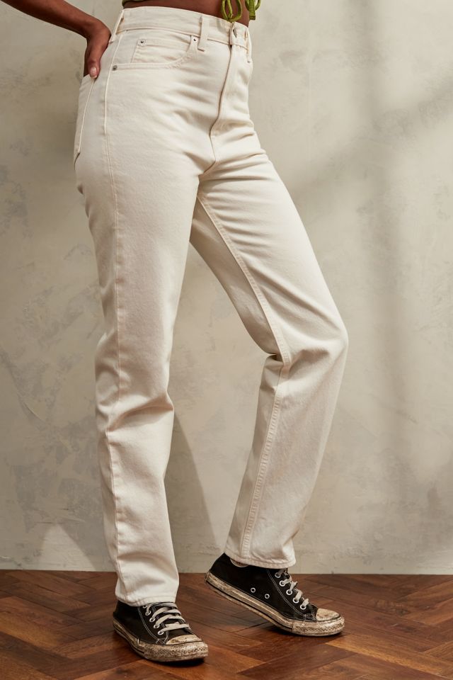 Authentic 70s styling in these denim jeans by Levi's. Features a super high rise waist and a skinny straight fit through each leg. Five-pocket styling tops a button and zip fly closure and signature brand patch to reverse.