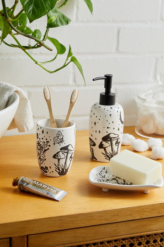Display your favourite soaps in this mystical dish. Open rectangular silhouette crafted from a stoneware construction with a mystical mushroom design to the base.