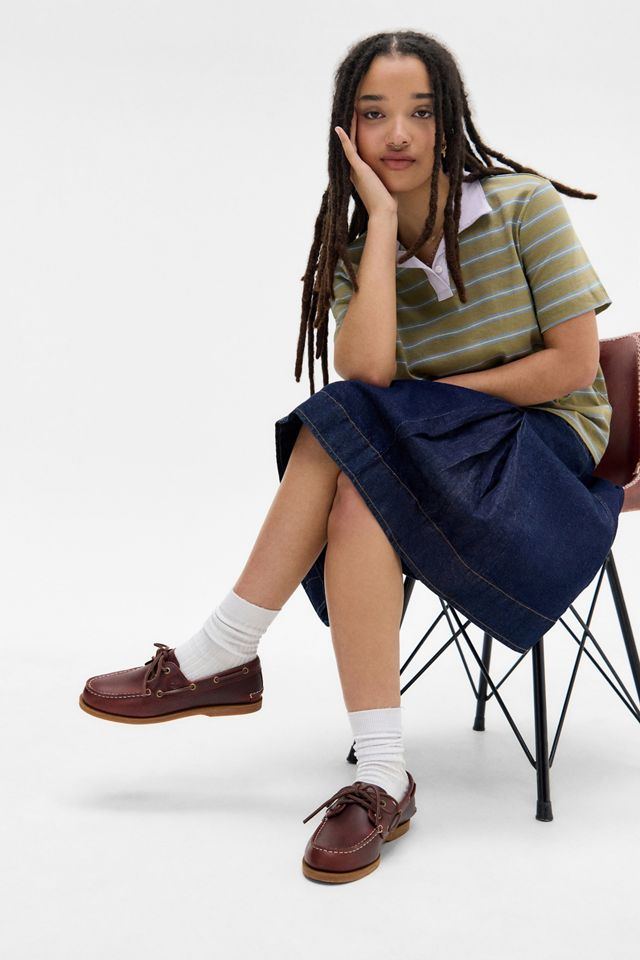 Classic and timeless boat shoes from Timberland with a 360° functional rawhide lacing system. Crafted from premium leather in a slip-on style with an almond toe, contrast stitching and an EVA midsole for added comfort.