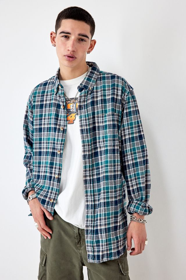 Brushed flannel shirt, an OG vintage style sourced by Urban Renewal. Each unique piece will features a spread collar, drop shoulders, long sleeves and a button-through placket.