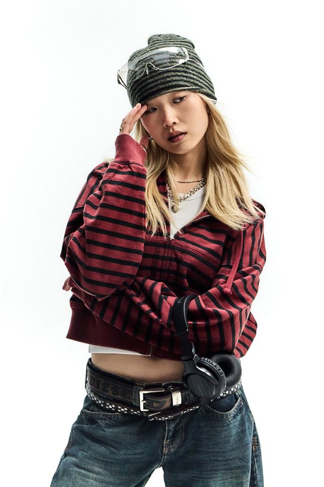 Agrega una prenda para superponer a tu colección con esta sudadera con capucha a rayas de BDG. Confeccionada en jersey de algodón, cuenta con capucha con cordón, hombros caídos, mangas largas, cierre de cremallera, bolsillos tipo canguro y dobladillo corto. Solo en UO.