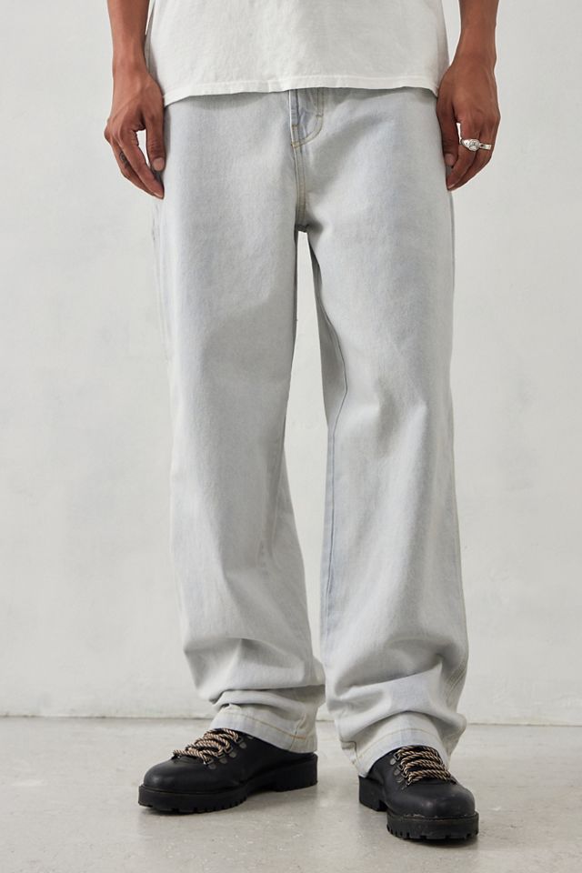 Vaqueros de algodón lavado Dickies, un estilo listo para el día a día. Cuenta con una cintura de gran altura, trabillas para cinturones, un botón y cremallera y un estilo de cinco bolsillos. Acabado con costuras de punto de contraste y un ajuste recto a través de la pierna.