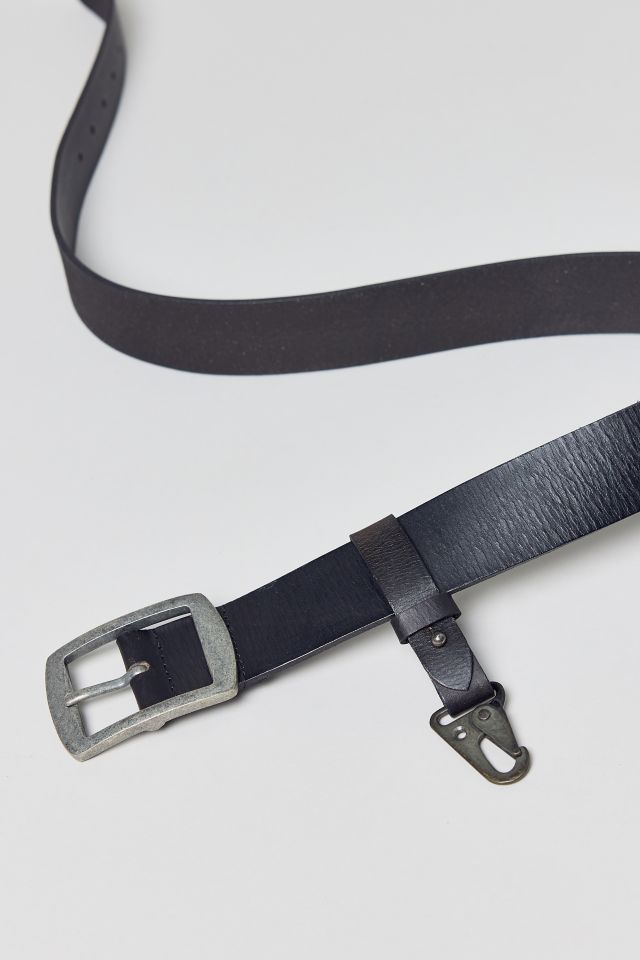 Ceinture en cuir au look classique ornée d'un accent de clip à mousqueton. Ceinture à ajustement réglable avec une fermeture à boucle.