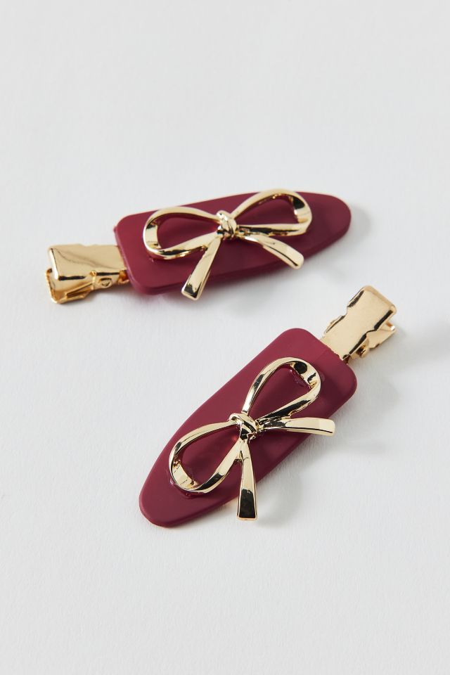 Gardez vos cheveux sans plis avec cet ensemble assorti de pinces à cheveux anti-plis. Silhouette métallique lisse surmontée de détails iconiques tels que les fleurs et les nœuds.