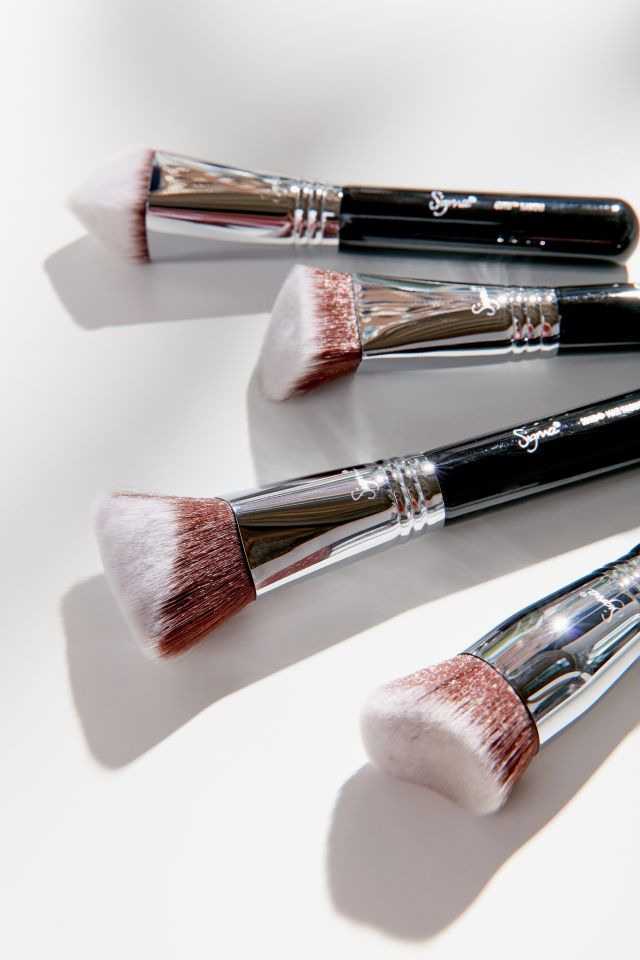 Ensemble de 4 pinceaux Kabuki signé Sigma Beauty. Chaque pinceau comporte une tête en angle spécialement conçue afin d’optimiser l’application de cache-cernes, de fond de teint, de fard à joues et même d’illuminateur et de surligneur.