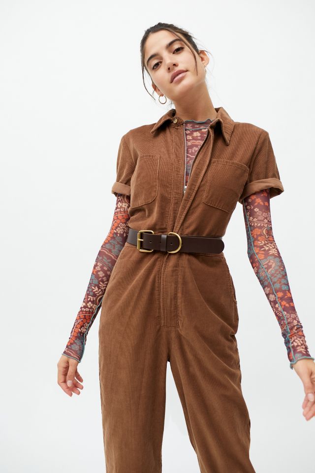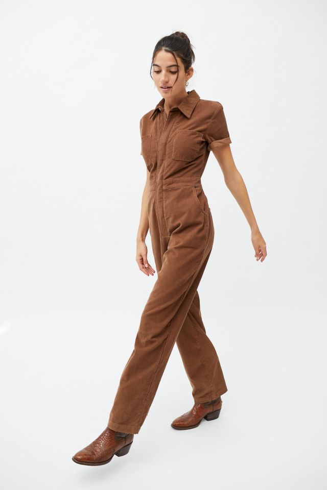 Workwear-style jumpsuit in soft corduroy. Find it only at Urban Outfitters.