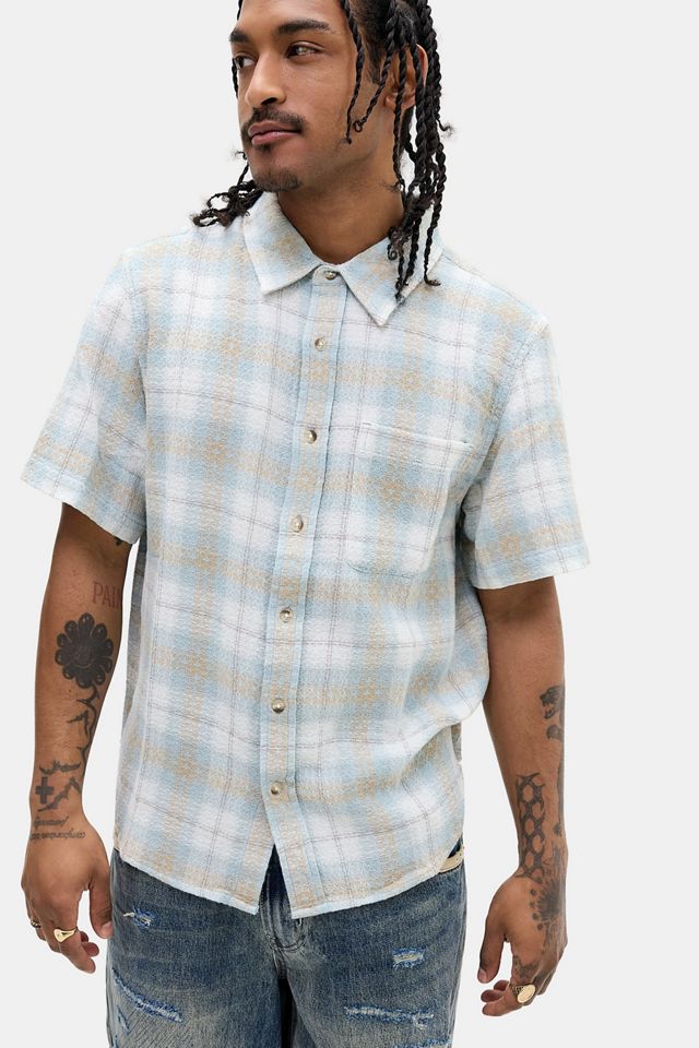 Chemise à carreaux de BDG, confectionnée en coton. Silhouette boxy, équipée d'un col standard, de manches courtes et d'un devant boutonné. Seulement chez UO.