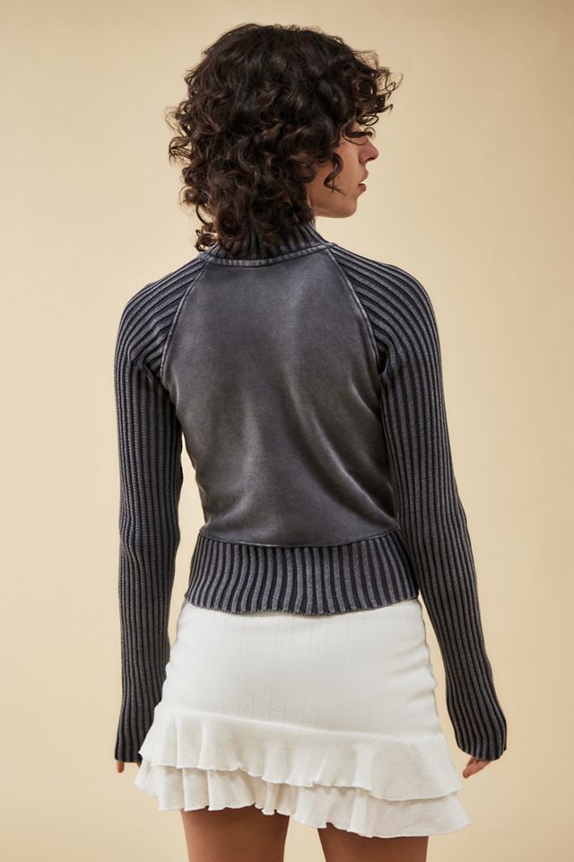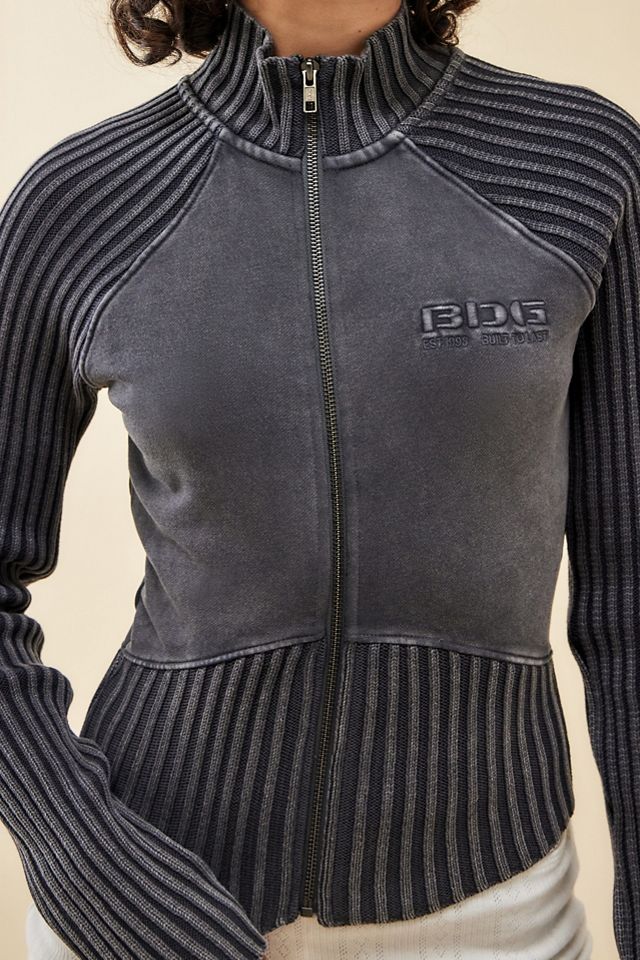 Haut de piste zippé rétro grunge par BDG. Fabriqué à partir d'une fabrication tricotée avec un col montant, une patte de boutonnage zippée et des manches longues. Couronné d'un design côtelé et d'un logo appliqué sur la poitrine. Exclusivement chez UO.