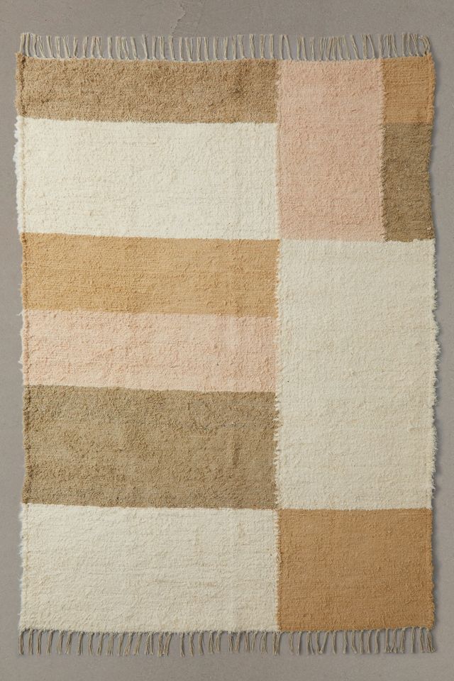 Ajoutez un imprimé géométrique ton sur ton à n'importe quelle pièce avec ce tapis à poils longs. Confectionné dans un matériau tissé texturé, il présente une forme rectangulaire superposée et des bords à pompons.
