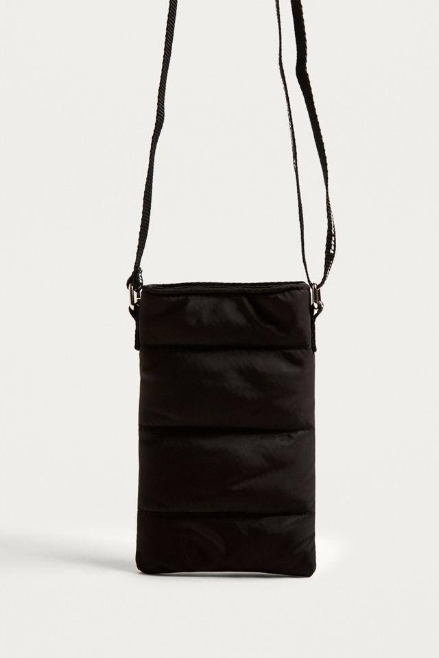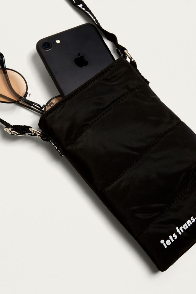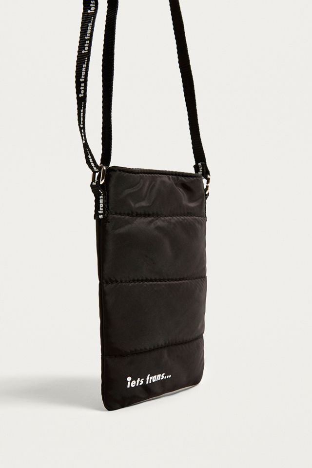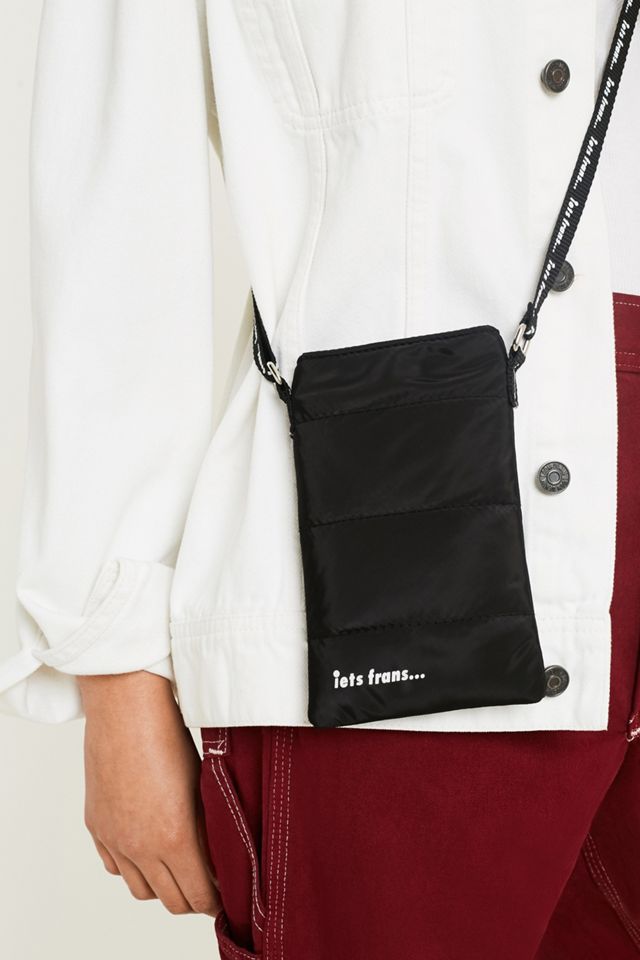 Mini stash bag from iets frans… in a quilted construction. Ideal for holding your phone, money + everyday essentials – or use it as a drink holder for easy access. Complete with an adjustable crossbody strap topped with logo detailing.