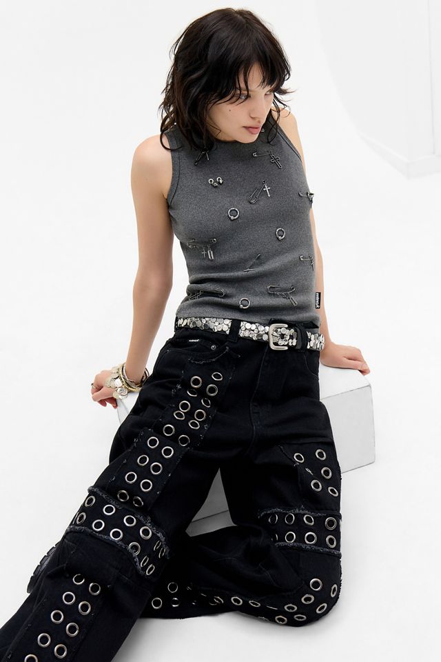 Ajoutez une touche grunge à votre garde-robe avec ce gilet de Minga London, orné d'épingle de sûreté et de détails cloutés. Silhouette slim-fit taillée dans un jersey doux à la coupe classique.