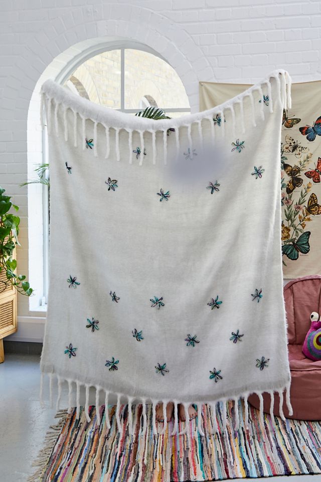 Enroulez-vous sous une couverture douillette avec des détails embellis super mignons et des finitions à pompons. La couverture tricotée douce est prête à être drapée n'importe où dans votre espace, idéalement adaptée à un lit ou un canapé.