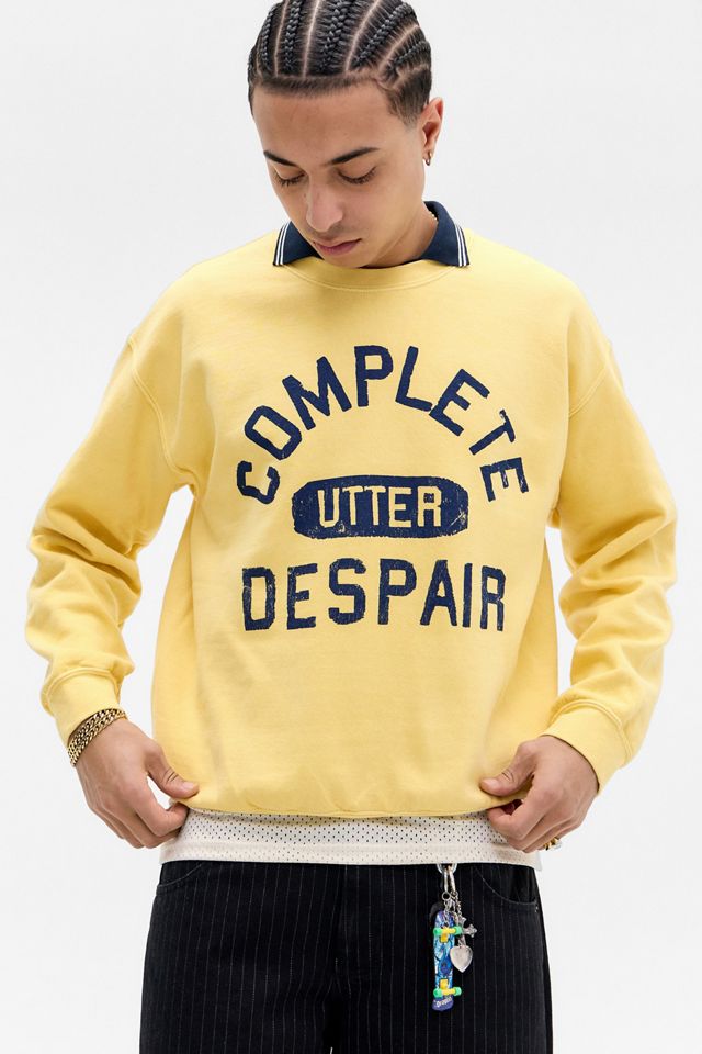 Restez chaotique dans ce sweat-shirt avec 'désespoir total' imprimé sur le devant. Style décontracté coupé dans un tissu doux complet avec un col rond, des épaules tombantes et des manches courtes.