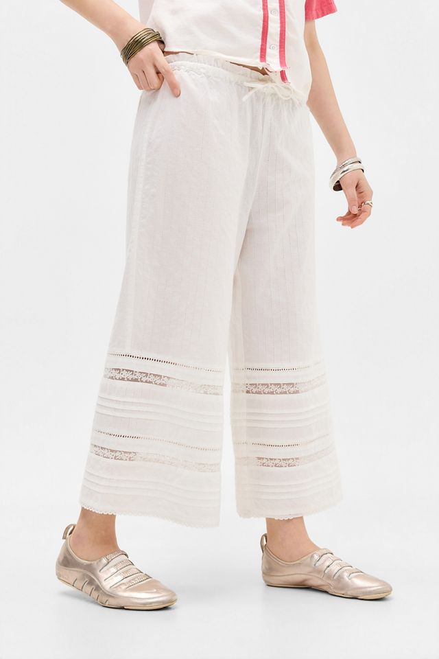 Aggiorna il tuo guardaroba estivo con questi pantaloni corti in cotone di Damson Madder. Silhouette rilassata a gamba larga, completa di vita annodata e delicati dettagli in broderie anglaise.