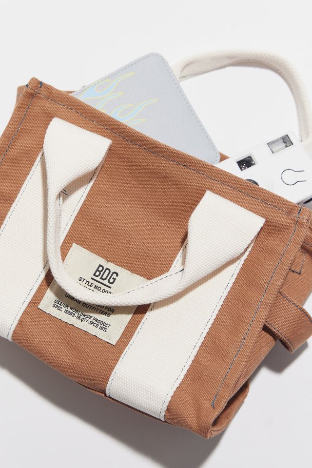 Medium-sized canvas tote bag from BDG fitted with a side loop, reinforced haul handles and a detachable, adjustable strap. Exclusively available at Urban Outfitters.