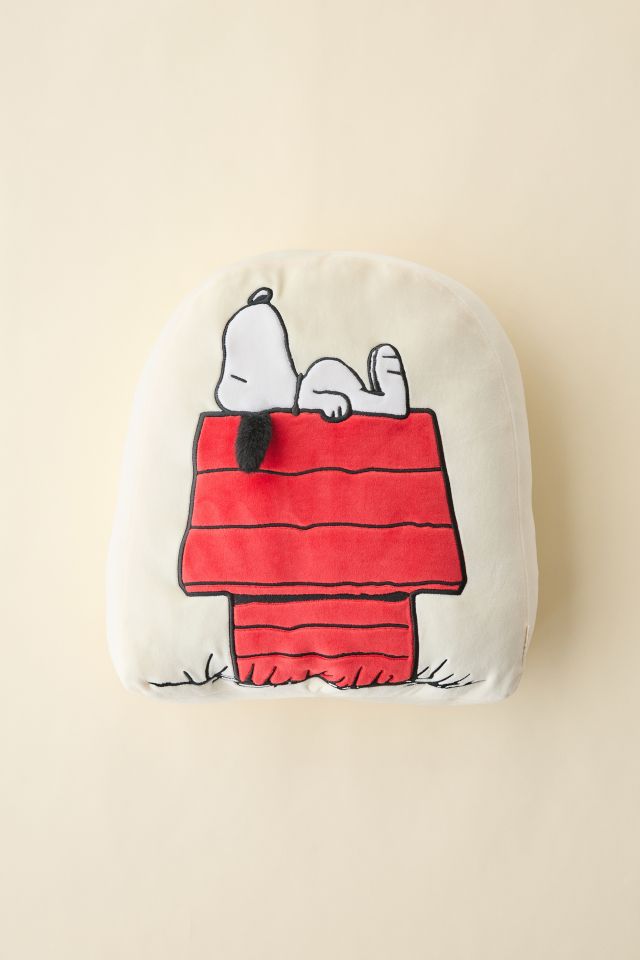- Arch-shaped plush pillow with Snoopy’s doghouse at the front