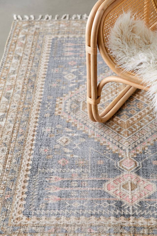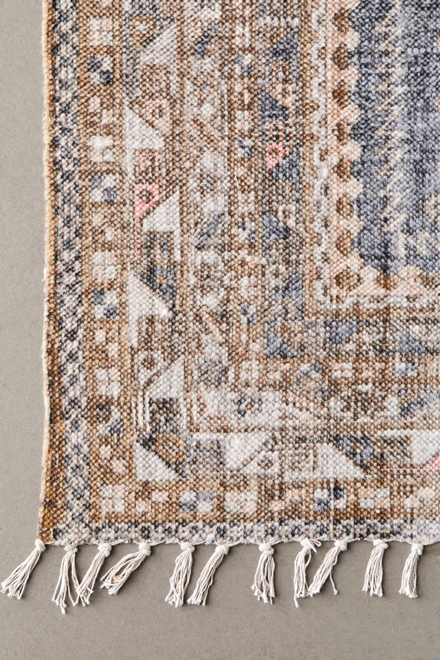Capturing a classically bohemian look, this cotton printed rug in a low-profile weave features a brushed finish for added texture and dimension. Trimmed with fringed edges.