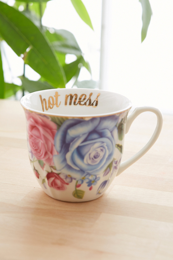 Classy teacup topped with a side of serious sass. Finished with gilded detailing + an elegant floral print for a fun little cuppa contrast.