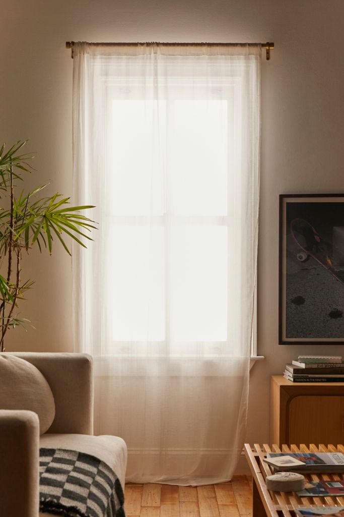 Light + airy, the Chloe Gauze Curtain adds some colorful interest to the room while allowing natural light in. In a soft cotton weave finished with a tunneled top and matching tie. Sold as a single panel.