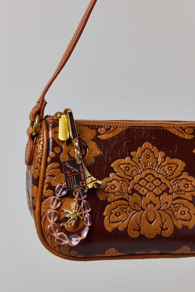 Add a little love to your bag with this Paris purse charm complete with an Eiffel Tower charm and pink-toned beads.