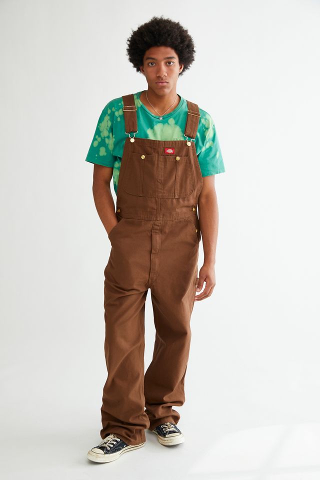 Bib front overalls by Dickies with utility-style pockets and buckle-down adjustable shoulder straps.