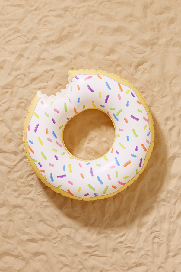 Sweet pool float shaped like a donut. Crafted from heavy-duty vinyl and easy to inflate. Only available at UO!