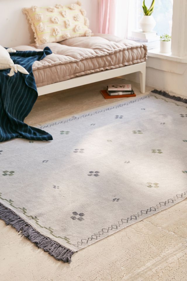 Woven cotton area rug printed with allover decorative symbols for a minimal bohemian vibe. Trimmed with knotted fringe at the sides to complete the look. Only available right here at Urban Outfitters!