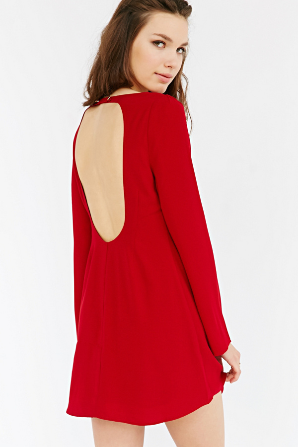 Long-sleeve shift dress from Gentlefawn. Swingy silhouette cut short featuring an open cut-out at the back, a button closure at the rear neck and long sleeves.