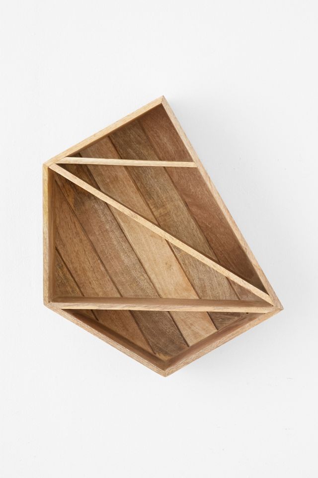 Wooden wall shelf in an eye-catching geometric design. Perfect as a stand-alone piece or, purchase in multiples! A fun, functional design piece that adds a unique, rustic touch to any space. UO Exclusive.