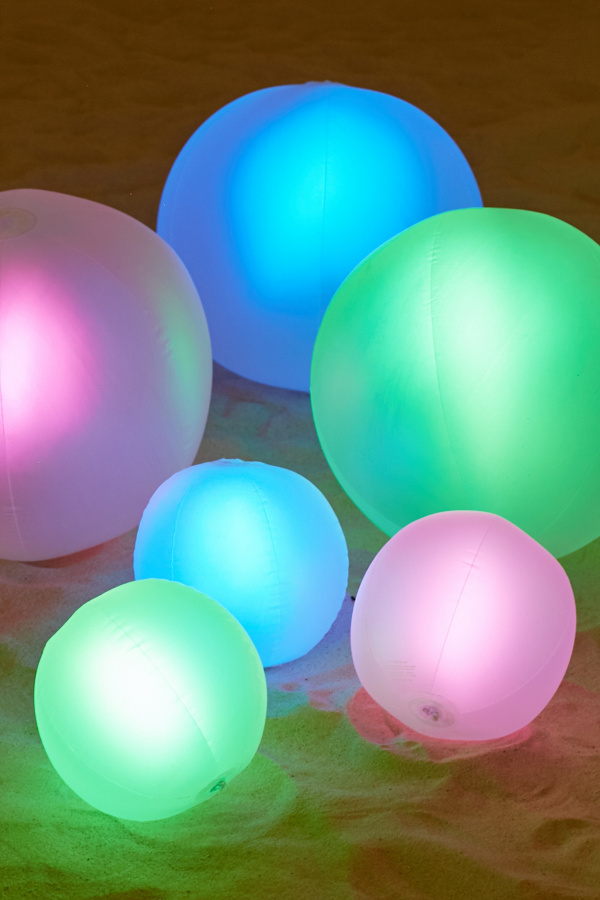 Light-up ball for really getting the party started at the beach, pool or a festival - usable as a pool float or beach ball! In a clear inflatable design sold with two 6" glow sticks you simply bend once, shake + insert through the center of the ball to make it glow! Each sticks glows for up to 10 hours each. Re-usable with new glow sticks (not included).