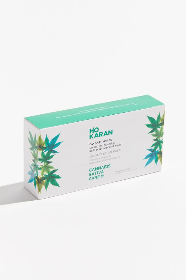 Extra-soft face and body wipes by HO KARAN that cleanse and freshen gently with organic hemp sativa and aloe vera oil.