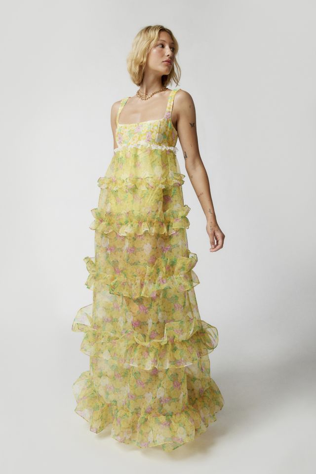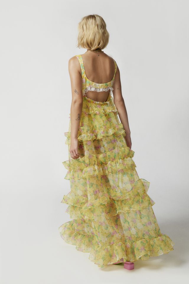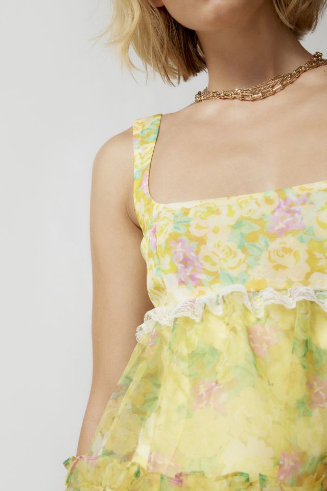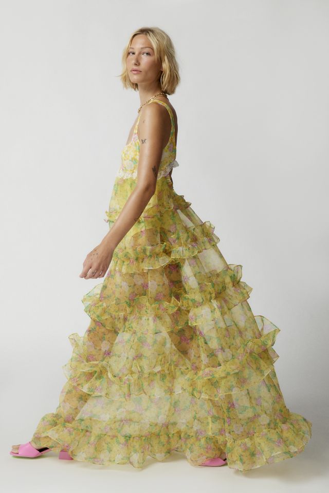 For Love & Lemons Vikki Sheer Tiered Floral Dress
