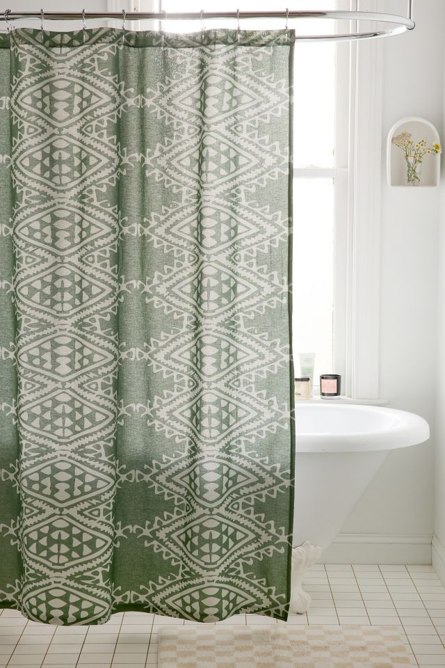 Inspired by trims from Justina Blakeney's vintage textile collection, this cotton shower curtain features geometric motifs printed allover the top panel that lends boho charm to your getting-ready space. Topped with buttonholes for easy setup.