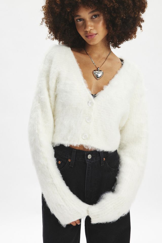 Cozy meets sweet with this Kimchi Blue cardigan in a super-soft fuzzy, brushed knit. Designed in a boxy & cropped silhouette featuring a v-neckline, balloon sleeves and tonal buttons for an elevated finish. Exclusively at Urban Outfitters.