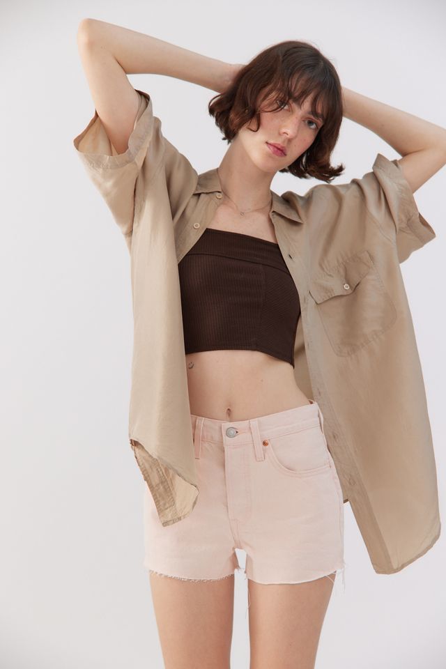 Classic high-waisted Levi’s 501 shorts in a pastel wash. Vintage-inspired fit with a nipped-in waist and straight leg with a cutoff hem. Rigid denim; zip fly; 5-pocket.