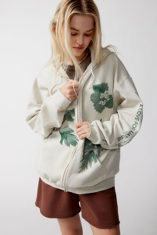 Hoodie with floral + botanical graphics printed at the front and back. Cut in a relaxed + oversized fit with a zip closure at the front and side pockets. Finished with graphics at the sleeve. Find it exclusively at UO.