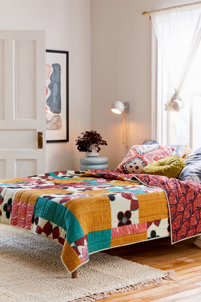 With richly saturated, retro-inspired hues, this mixed print quilt is made from a cotton weave with allover seaming across the blend of florals, geos and more. Features an allover print at the reverse, complete with tipped edges.