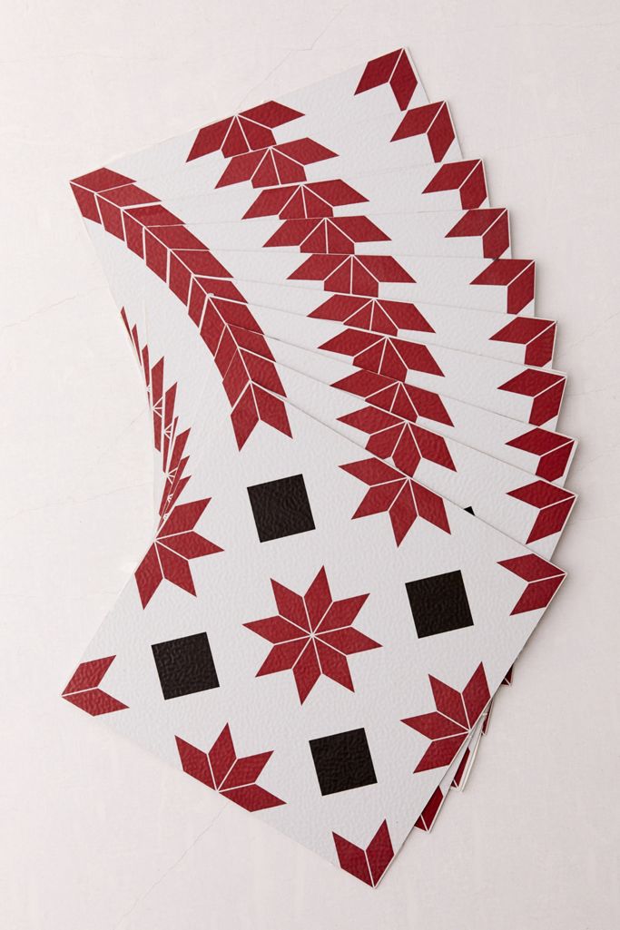 Give your space a tiled look with this set of 10 permanent adhesive panels, featuring a geometric pattern evocative of patchworked quilts. Water-resistant, washable panels can be arranged in a custom orientation to suit your space perfectly.