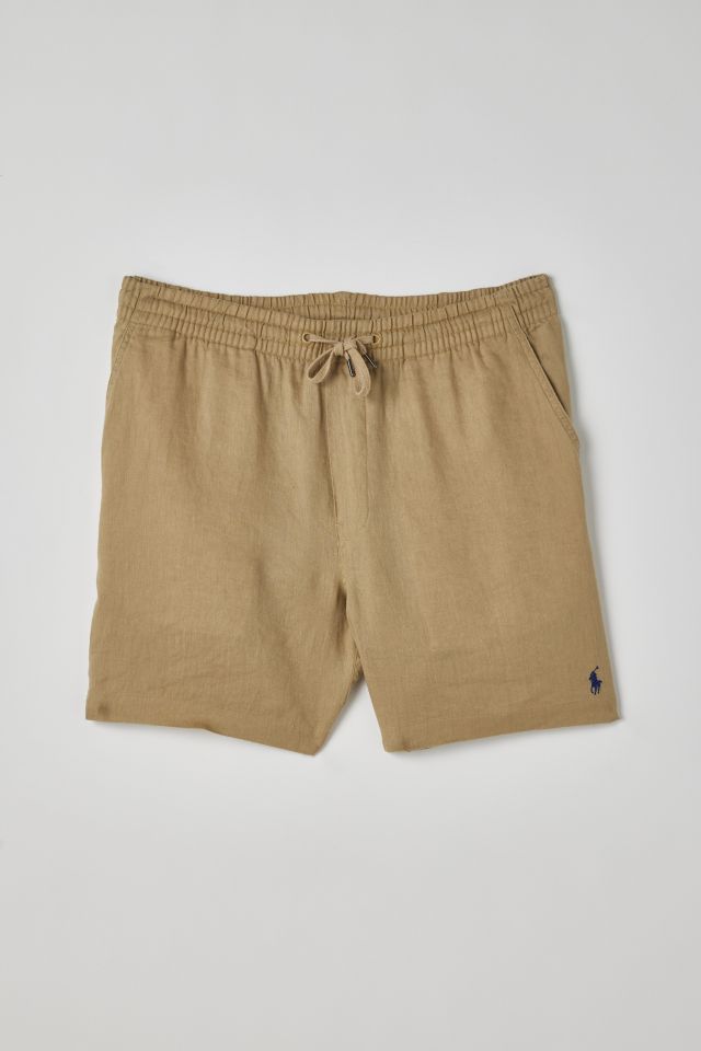 Shorts by Polo Ralph Lauren with a mid-rise waist and 6" inseam. Fitted with front and back pockets. Stretch elastic waistband with an adjustable tie closure.