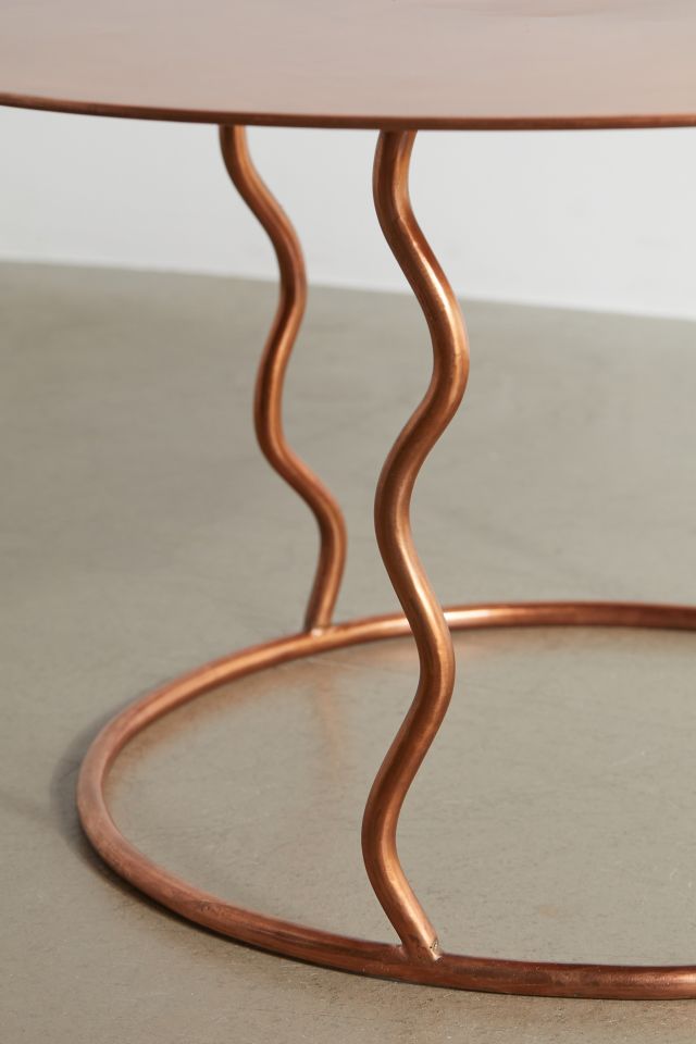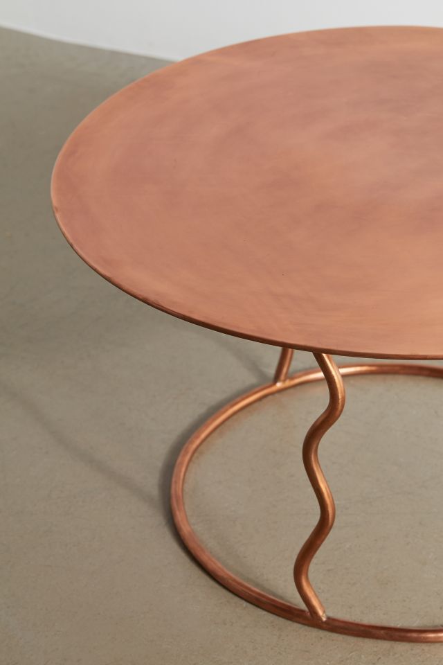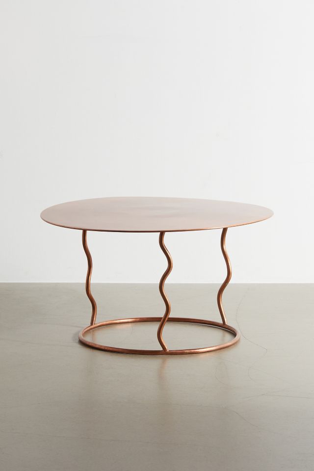 Whimsically vintage-inspired coffee table in an antiqued copper-plated finish, featuring a round tabletop supported by squiggly legs for a sweet touch we can’t get enough of. Made from copper-plated iron, this beautiful piece will patina and tarnish with age, for a little touch of character that’s so unique. Assembly required. Exclusive to Urban Outfitters.